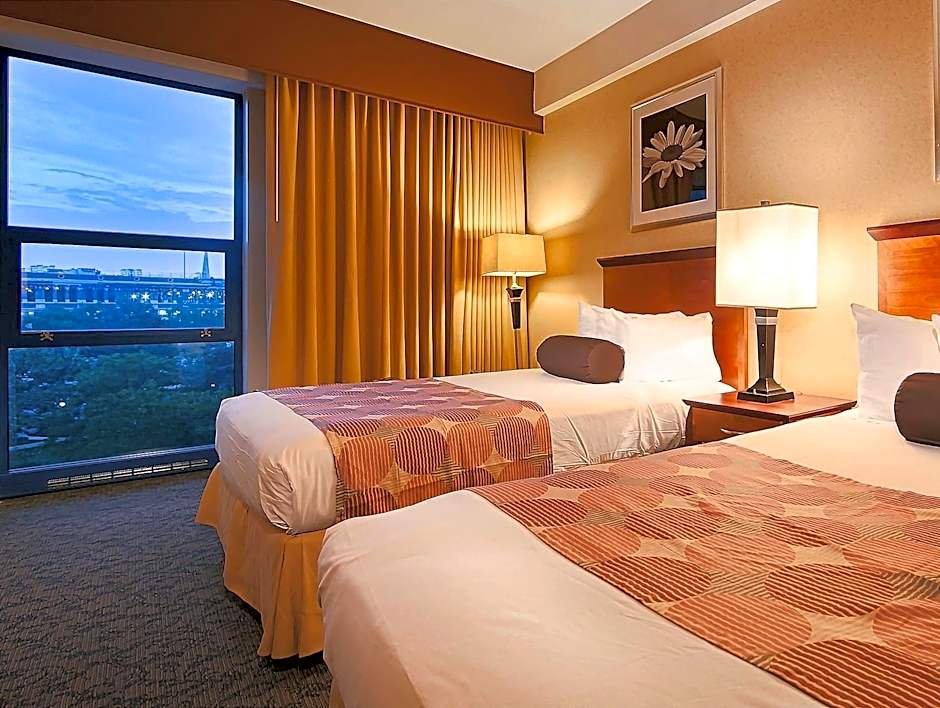 房型多樣,包括經濟房、豪華房、尊榮房及 Queen 房(226 平方英尺)。Queen 房(226 平方英尺)最多可容納 4 位成人及 3 名兒童,配置 1 張 Queen 大小床。其他房型包括 Studio、雙人房(1 張雙人床)及經濟房(限 2 位成人)。付款接受 Visa、American Express(美國運通)或 Mastercard,恕不接受現金。